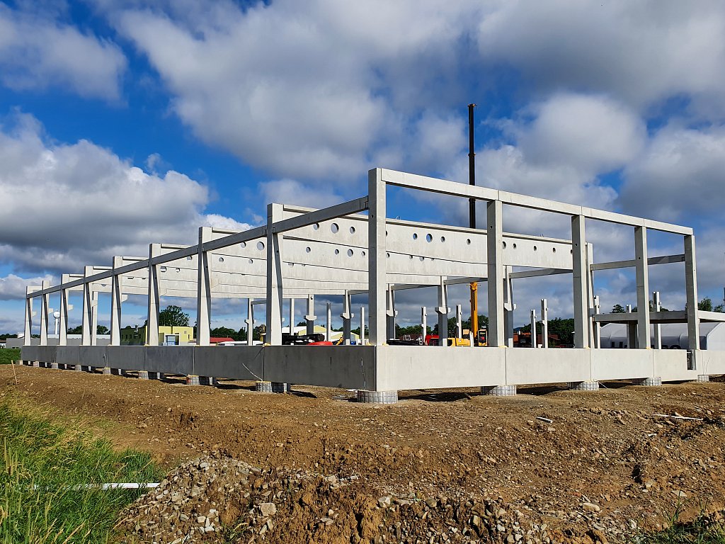 Ve výrobním areálu firmy HaCase realizujeme hrubou stavbu haly, která má rozměr 48 × 55 metrů a sestává z 154 kusů prefabrikátů.