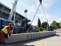 Jednoduchý rám funkcionalistického tvaru je připomínkou zakladatele a mecenáše olomouckého klubu – velkoobchodníka Josefa Andera. Vlastní betonový portál je vysoký 3,5 metrů, široký 8,90 metrů a vyroben byl s maximálním důrazem na pohledovost dílců. Jako materiál byl použit samozhutnitelný beton tř. C35/45. Ve spolupráci s Ing. arch. Žeravou a firmou Grapo byl do portálu zakomponován a speciálně odlit grafický nápis Andrův stadion, který byl vytvořen z fontu písma evokujícího období 30. let. Reportáž z dokončení montáže, která musela být provedena s nejvyšší možnou pečlivostí, naleznete zde.